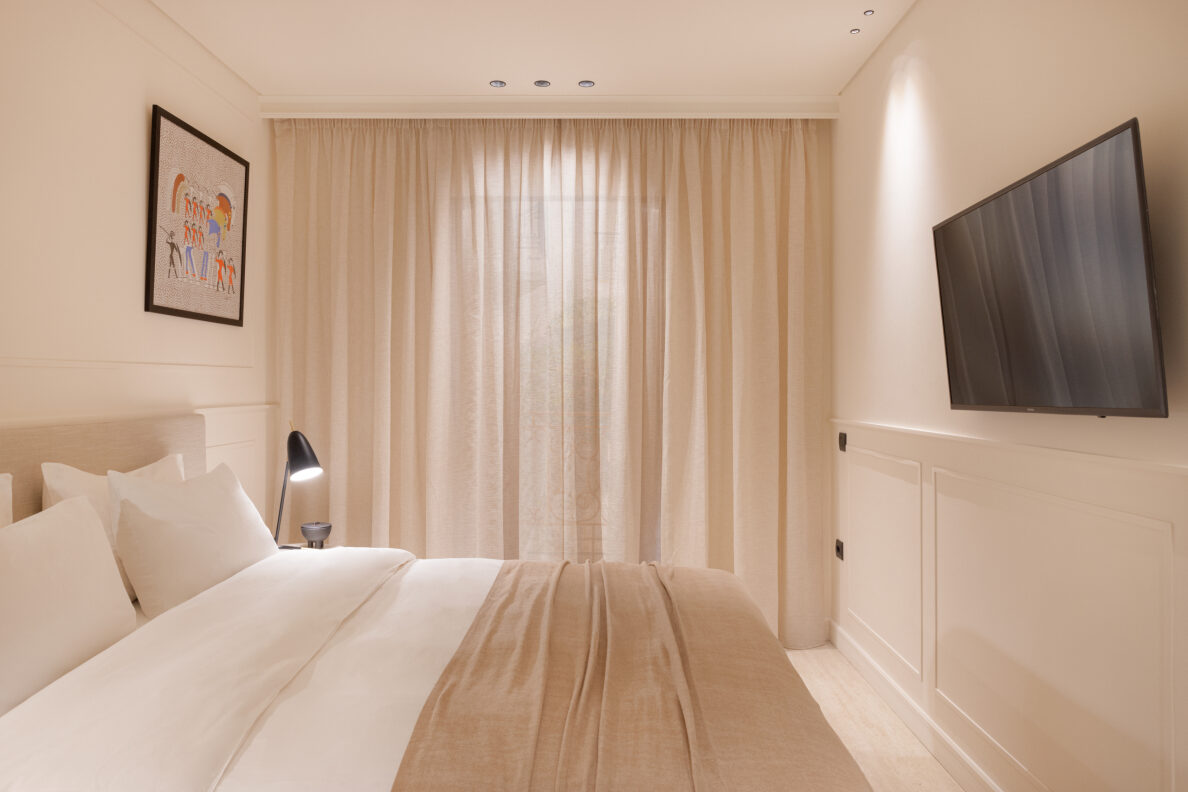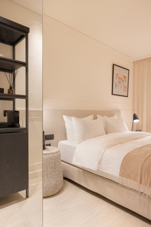 Las elegantes habitaciones, suites y villas ofrecen vistas al mar o al jardín, terrazas privadas y algunas con piscina. Los interiores lucen cálidos tonos mediterráneos, materiales naturales y comodidades de lujo, ideales para un descanso profundo.