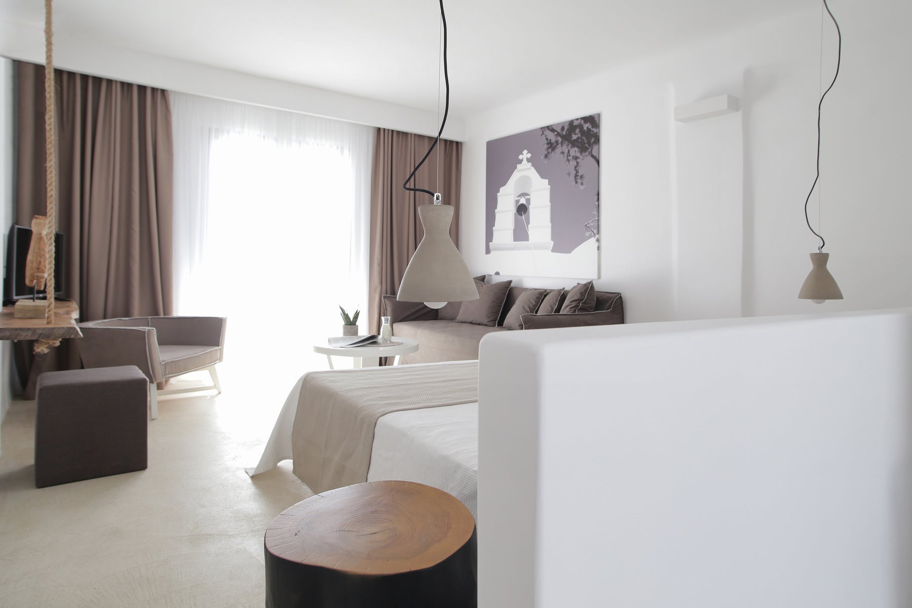 Las elegantes habitaciones, suites y villas ofrecen vistas al mar o al jardín, terrazas privadas y algunas con piscina. Los interiores lucen cálidos tonos mediterráneos, materiales naturales y comodidades de lujo, ideales para un descanso profundo.