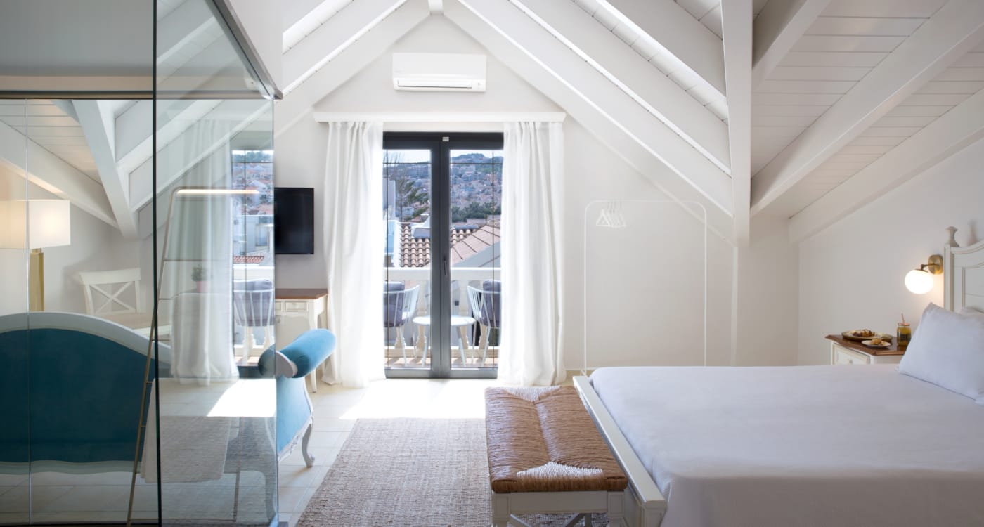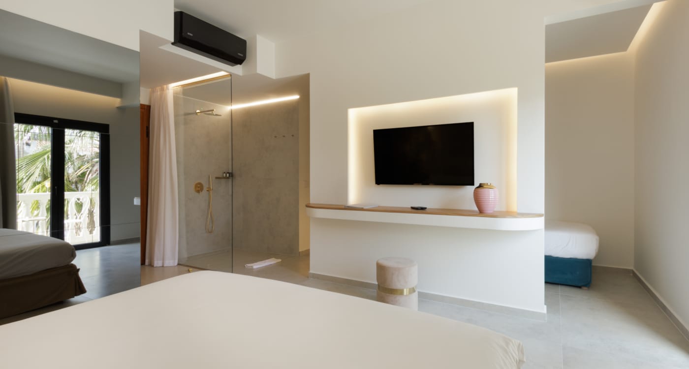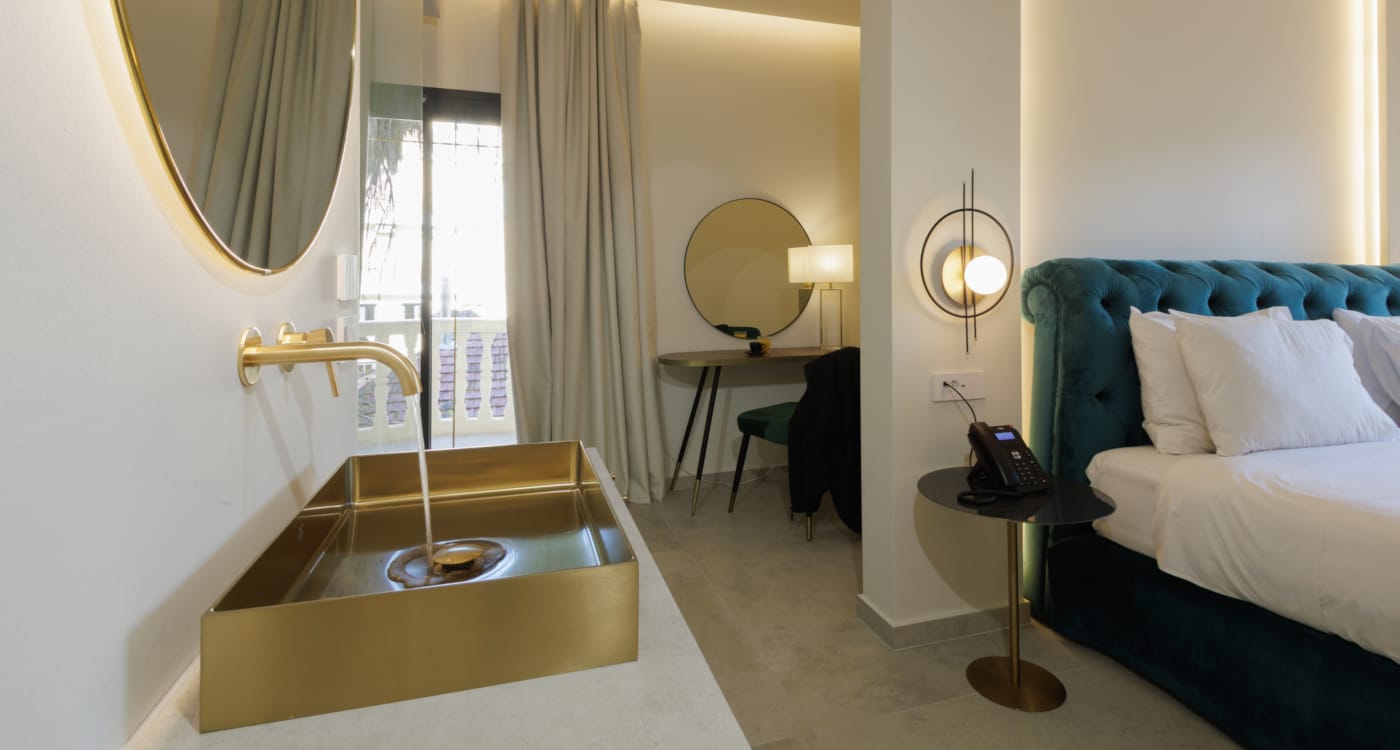 Las elegantes habitaciones, suites y villas ofrecen vistas al mar o al jardín, terrazas privadas y algunas con piscina. Los interiores lucen cálidos tonos mediterráneos, materiales naturales y comodidades de lujo, ideales para un descanso profundo.